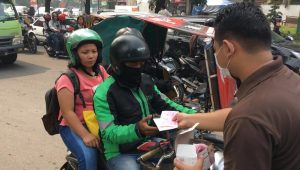 “Udara beberapa hari ini, kurang baik, tidak bisa lama lama berada di luar, terasa sesak,” ujar Panji salah seorang pengendara sepeda motor saat menerima masker dari relawan.