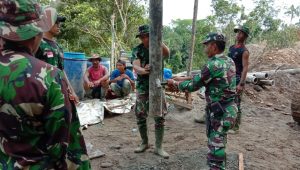 Kapten Inf B Lumbanraja menyebutkan saat ini prajurit TNI dibantu warga pengecoran pondasi.