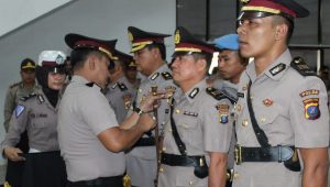 Kapolres Asahan AKBP Faisal F. Napitupulu, Memimpin upacara serah terima jabatan (sertijab) Kabag Ops dan Kapolsek Prapat Janji Polres Asahan, di Aula Wira Satya Polres Asahan, Jumat (1/11).