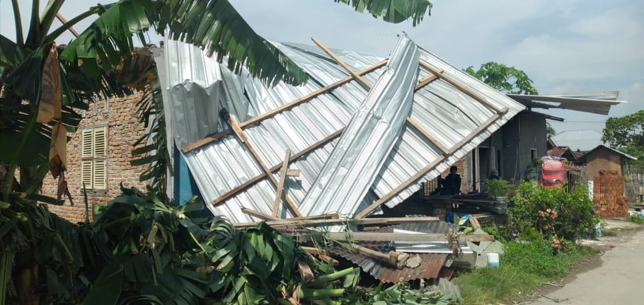 Diterjang angin puting beliung ratusan rumah warga di Desa Pematang Johar, Kecamatan Labuhan Deli rusak berat, Selasa (12/5/2020).
