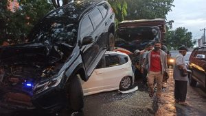 “Setelah itu, mobil Pajero Sport yang ditabrak Truk Fusso, menabrak Mobil Honda Jazz yang ada di depanya.