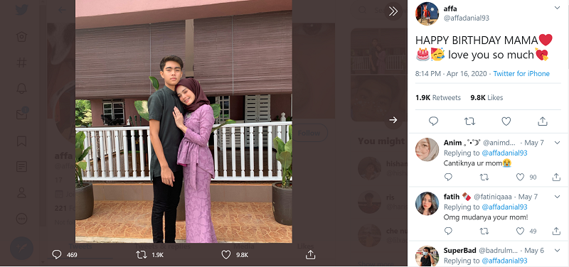 Affa, pemilik akun Twitter tersebut memberikan keterangan di foto yang ia bagikan. Pada foto tersebut tertulis, “HAPPY BIRTHDAY MAMA. Love you so much”.