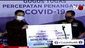 “Kami langsung memperkenalkan pemenang resmi lelang motor Gesits buatan anak bangsa. Motor listrik pertama di Indonesia. Langsung saja kami persilakan Warren Tanoesoedibjo,” kata Olivia dalam konferensi pers di Graha BNPB Indonesia, di Jakarta, Jumat (22/5).
