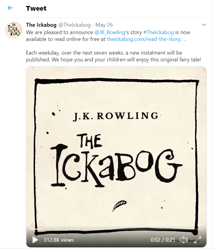 “Saya memutuskan untuk merilis The Ickabog secara gratis pada website resminya, sehingga anak-anak yang kini terkena lockdown bisa membaca dan menikmati saat-saat yang menyenangkan dengan berimajinasi,” tutur J.K Rowling.