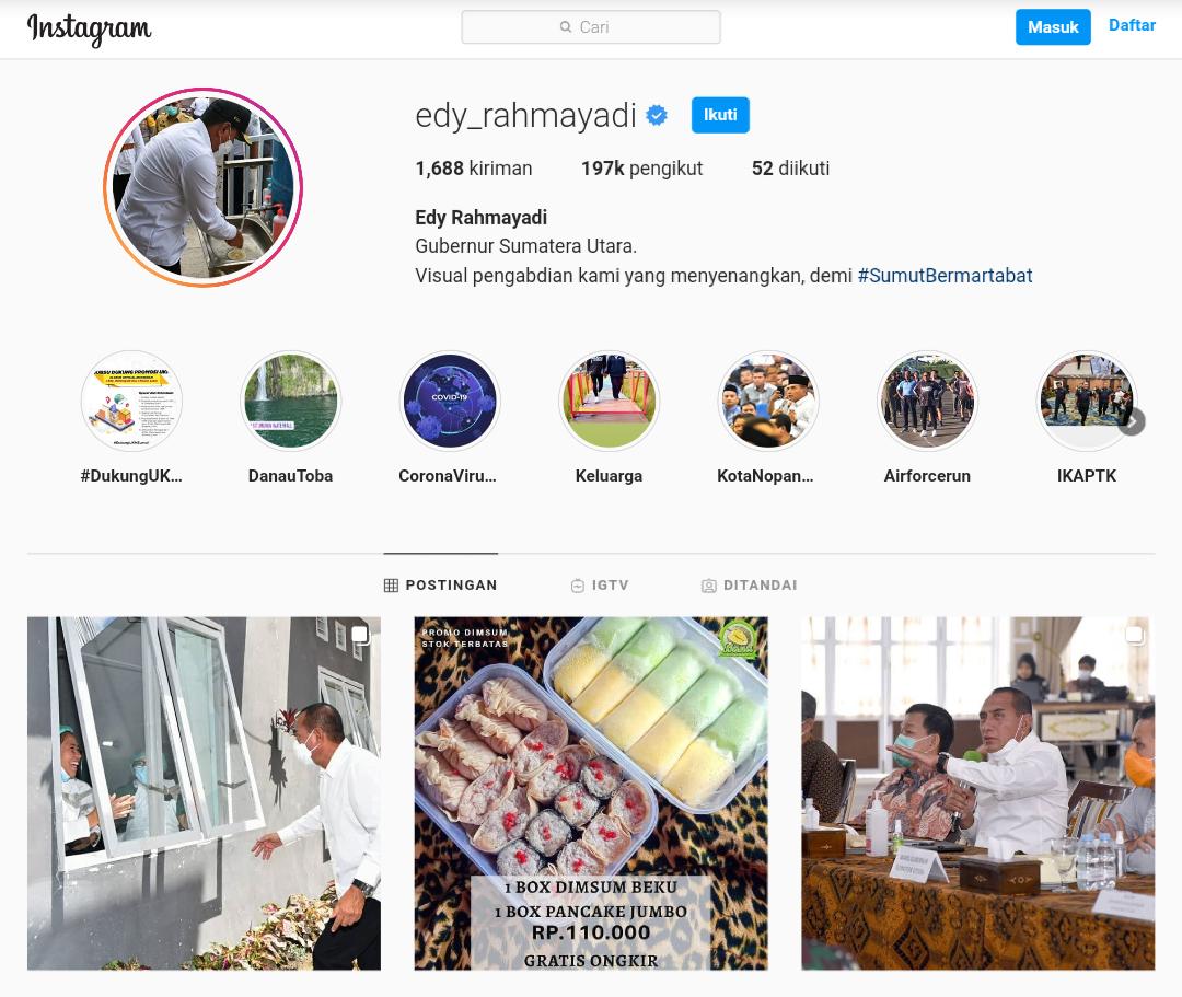 “Tentu saja, dengan potensi pengikut dan interaksi yang begitu besar di akun Instagram pribadi Edy Rahmayadi, akhirnya tercetus ide untuk memanfaatkan potensi akun pribadinya untuk membantu promosi produk-produk UKM di Sumatera Utara,” tulisnya dalam rilis yang diterima indiespot.id.