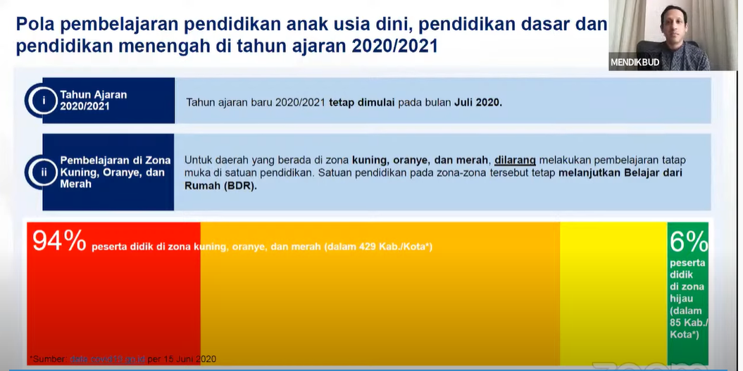 Penegasan Mendikbud juga disampaikan dalam pernyataan atau surat keputusan bersama (SKB) 4 institusi, yakni Kementerian Pendidikan dan Kebudayaan (Kemendikbud), Kementarian Agama (Kemenag), Kementerian Kesehatan (Kemenkes), dan Kementerian Dalam Negeri (Kemendagri) tentang Panduan Penyelenggaraan Pembelajaran Pada Tahun Ajaran dan Tahun Akademik Baru di masa Pandemi Covid-19. (EA)