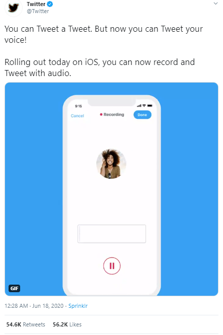 Indiespot.id-Medan. Twitter baru saja memperkenalkan fitur terbarunya, yakni Tweet Audio pada Kamis (18/06). Fitur ini memberi akses pada penggunanya untuk merekam suara dan membagikannya di lini masa.