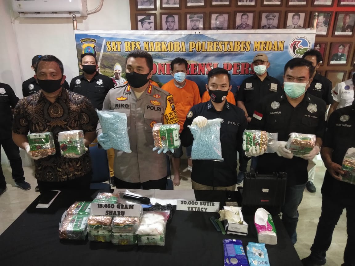 Indiespot.id-Medan, Kepolisian Wilayah Kota Medan menggagalkan jaringan narkoba lintas provinsi Medan-Pekanbaru. Tim Satresnarkoba Polrestabes Medan berhasil mengamankan 15 Kg sabu dan 20 ribu pil ekstasi.