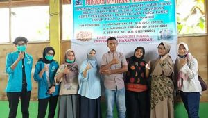 Adapun Tim pengabdian masyarakat yang terlibat dari UNHAR yakni Yani Suryani, SE,M.Si dan Desi Ika SE, M.Si. Sementara itu dosen dari UNPAB Ir. Maimunah Siregar, MP. Desi Ika dalam kegiatannya mengatakan, kegiatan ini merupakan Program Kemitraan Masyarakat (PKM) Ristek Dikti kegiatan pertama dimulai dari pelatihan pemasaran jamur tiram melalui media sosial yang disampaikan olehnya.