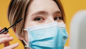 Saat menggunakan masker, hanya bagian alis dan mata yang selalu tertonjolkan. Baiknya, saat memakai make up difokuskan pada bagian mata. Kamu dapat menggunakan eyeshadow dapat dijadikan opsi agar mata terlihat lebih segar dan menonjol.