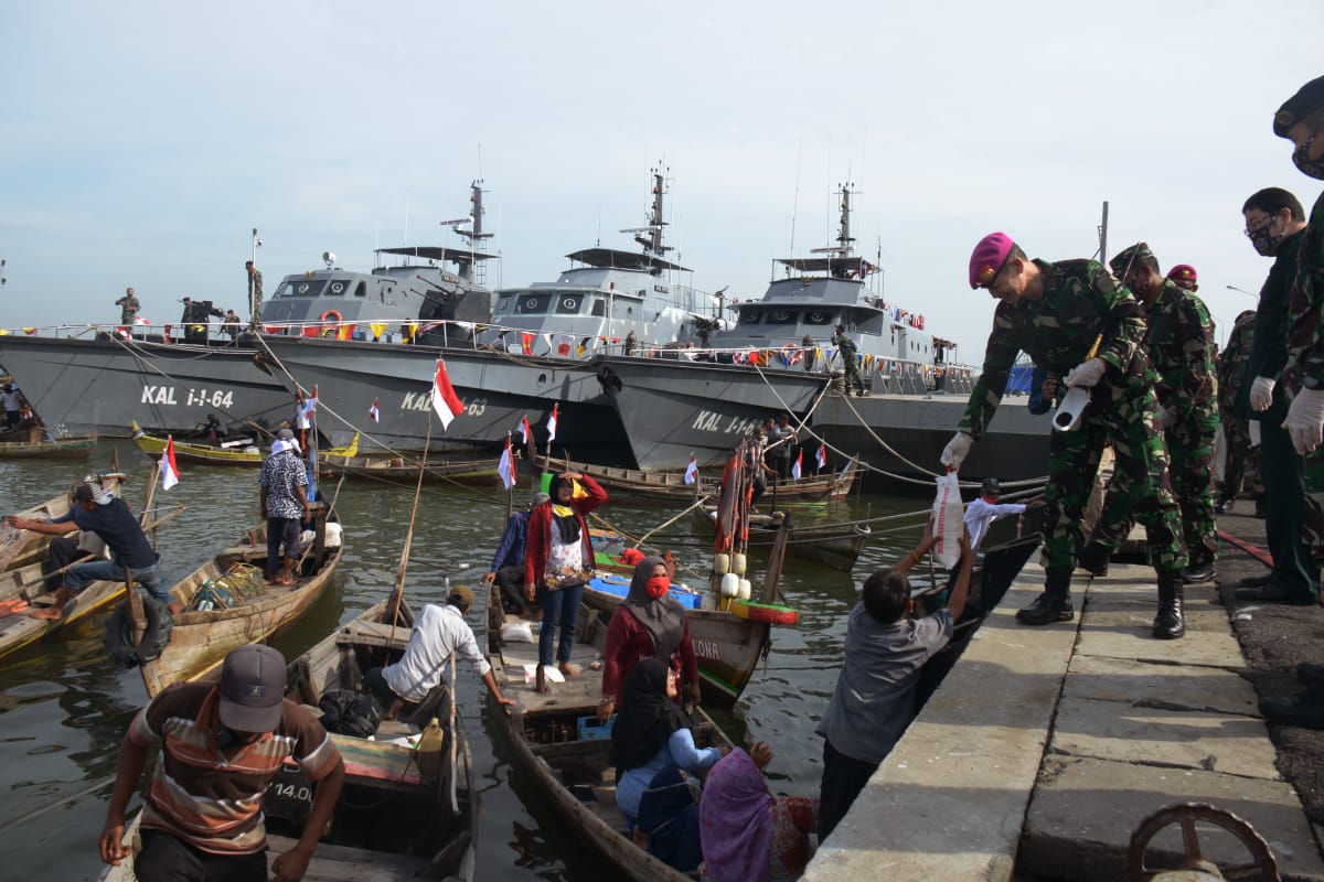 Indiespot.id-Medan, Jelang peringatan kemerdekaan Republik Indonesia Ke-75, Komandan Pangkalan Utama TNI Angkatan Laut I (Lantamal I) Brigjen TNI (Mar) I Made Wahyu Santoso membagikan Bendera Merah Putih dan bantuan sembako kepada Masyarakat dan Nelayan di Mako Lantamal I dan Perairan Belawan Sumatera Utara, Kamis (12/8).