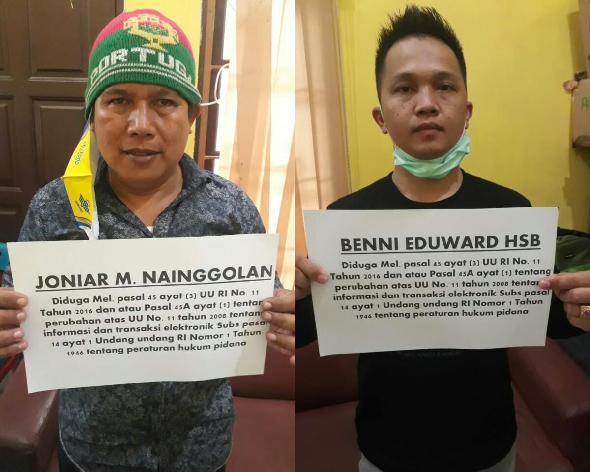 Indiespot.id-Medan, Dua orang Youtuber di Kota Medan, Beni Eduward (39) dan Joniar M. Nainggolan (45) ditangkap polisi. Keduanya diduga menyebar konten hoax di akun Youtubenya, dengan menyebut personel polisi telah menunggak pajak kendaraan Rp 3,7 juta. Selasa (18/8).
