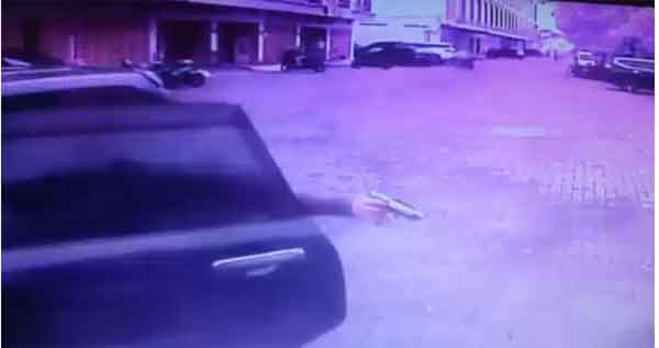 Sementara itu, pada video kedua terlihat pelaku yang ketahuan warga saat bereaksi berusaha melarikan diri dengan mengendari mobil. Pelaku juga terlihat kembali menodongkan pistol kearah satpam yang berjaga di pintu masuk.