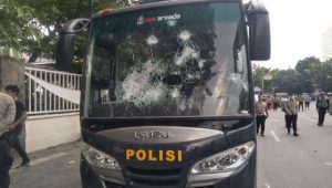 “Mereka terkena lemparan batu yang dilakukan massa aksi berujung bentrok,” ujarnya.