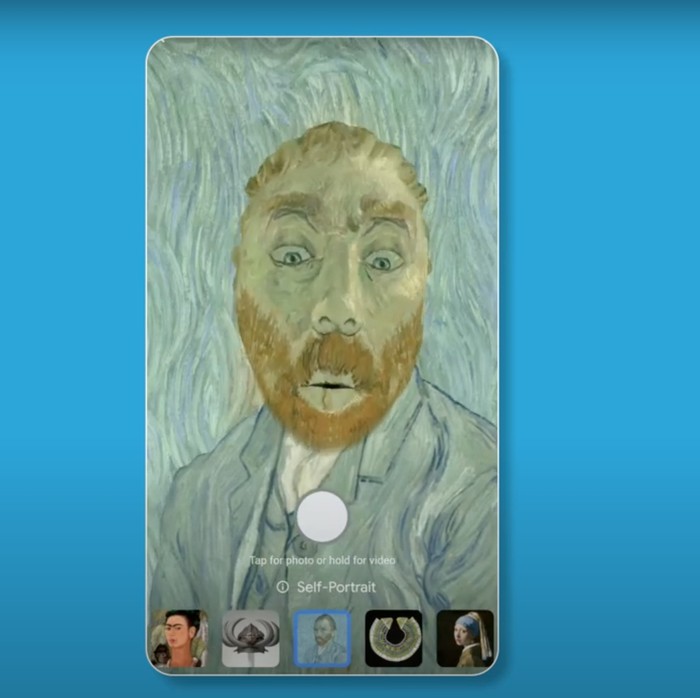 Art Filter mentransposisi fitur dari lukisan potret diri Van Gogh, Frida Kahlo, Johannes Vermeer, sampai Vermeer’s Girl with a Pearl Earring yang berasal dari koleksi Museum Seni Metropolitan New York. Selain itu, terdapat juga kalung Mesir kuno milik Museum Royal Ontario di Kanada.