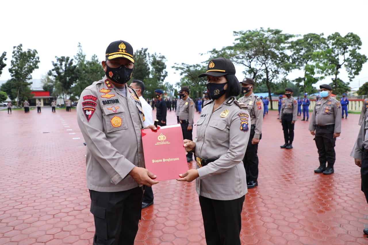 Indiespot.id – Medan, Kapolda Sumut berikan penghargaan kepada personil Polda Sumut yang berprestasi dan yang alami luka saat pengamanan aksi unjuk rasa tolak omnibuslaw bertempat di Lapangan K.S Tubun Mapolda Sumut. Kamis (22/10/20)