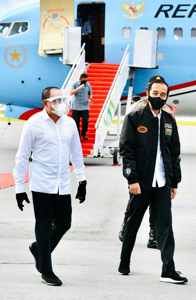 Indiespot.id-Sumut, Gubernur Sumatera Utara (Sumut) Edy Rahmayadi menyambut hangat kedatangan Presiden Republik Indonesia Joko Widodo, dan rombongan di Bandar Udara Silangit, Kabupaten Tapanuli Utara, Selasa (27/10/2020).