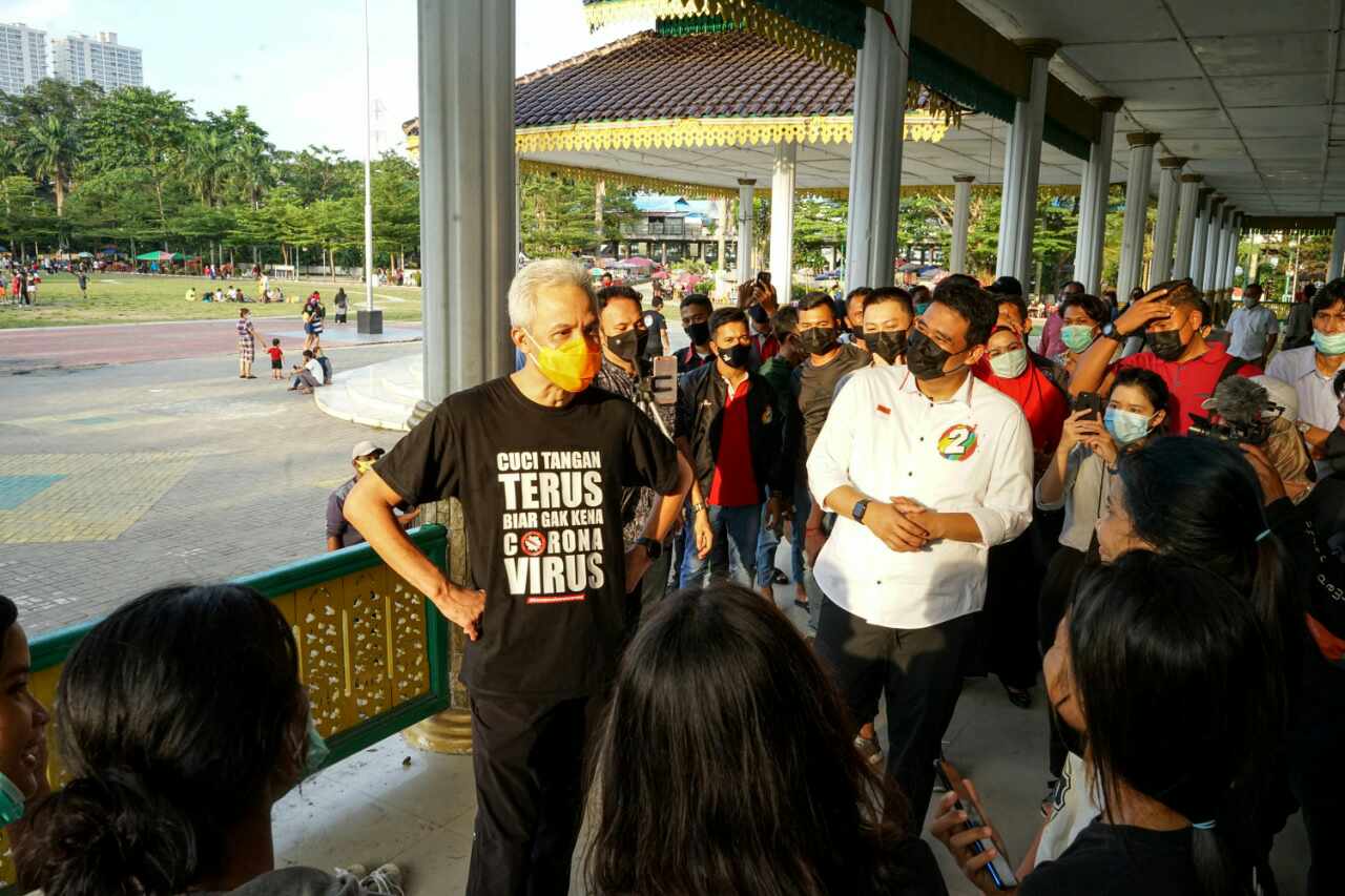 Indiespot.id-Medan, Tokoh nasional Ganjar Pranowo mengunjungi Kota Medan, pada Minggu (15/11). Ditemani Bobby Nasution, ia raun-raun ke sejumlah spot yang jadi ciri khas Kota Medan, salah satunya Lapangan Merdeka Medan.