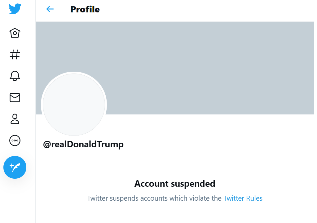 Saat itu Twitter hanya memblokir tiga cuitan tersebut dan meminta Trump menghapusnya agar mandapat kembali mengakses akunnya. Twitter juga menegaskan, jika @realDonaldTrump kedapatan kembali posting yang melanggar kebijakannya, maka akun tersebut akan diblokir permanen.