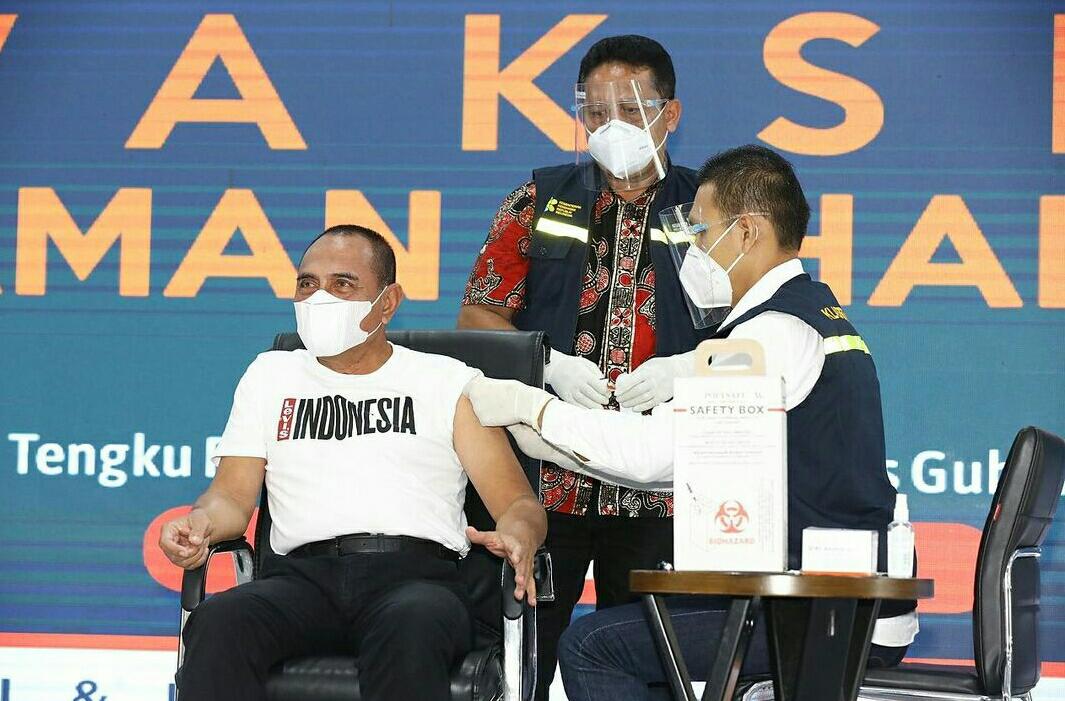 “Divaksin rasa-rasanya semakin sehat saya,” ungkap Gubernur, usai dirinya menerima suntikan vaksin Covid-19 di Aula Tengku Rizal Nurdin, Rumah Dinas Gubernur, Jalan Jenderal Sudirman Nomor 41, Medan, Kamis (14/1).