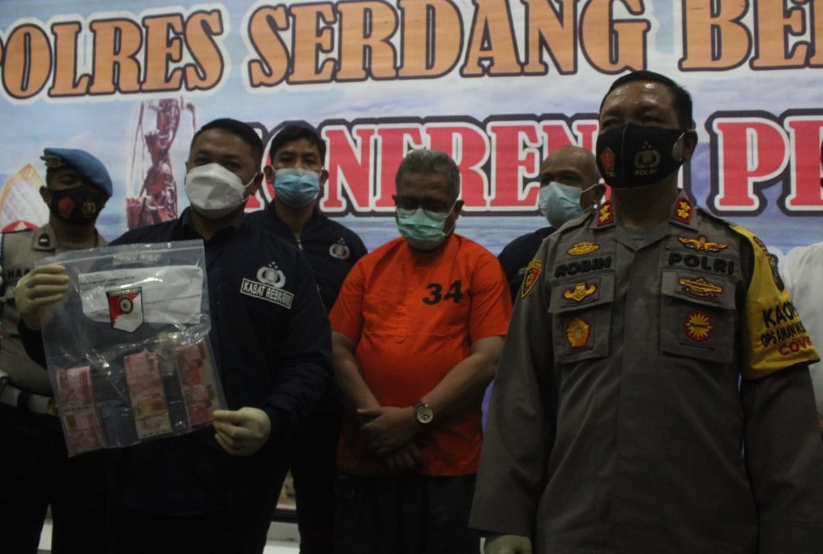 “Tersangka diamankan di salah satu rumah makan yang ada di Kecamatan Sei Rampah pada Kamis 21 Januari 2021 sekitar pukul 14.00 Wib, turut disita barang bukti uang tunai tiga puluh juta rupiah dan satu unit telepon seluler,” terang Robin.