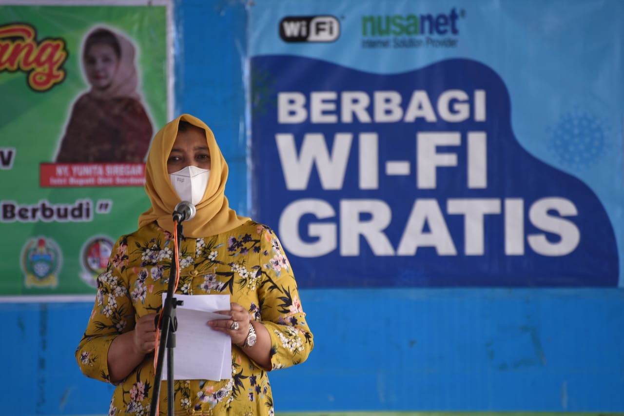 “Seperti mendapatkan sumber informasi di jejaring media sosial. Terima kasih Ibu Gubernur (Nawal Lubis) karena telah menghadirkan wifi gratis untuk beberapa sekolah yang berada di Kabupaten Deliserdang, ke depan anak-anak tidak perlu repot-repot untuk membeli kouta, cukup datang ke titik yang telah dipasang wifi gratis,” ujarnya.