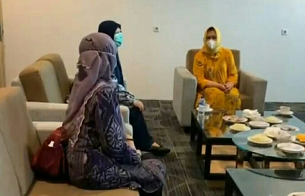 Indiespot.id-Medan, Ketua Tim Penggerak Pemberdayaan Kesejahteraan Keluarga (TP PKK) Sumut Nawal Edi Rahmayadi didampingi Wakil Ketua Sri Ayu Mihari Musa Rajekshah Menyambut kedatangan Ketua TP PKK Sumatera Barat (Sumbar) Nevi Irwan Prayitno di Bandara Kualanamu, Senin (8/2) Siang.