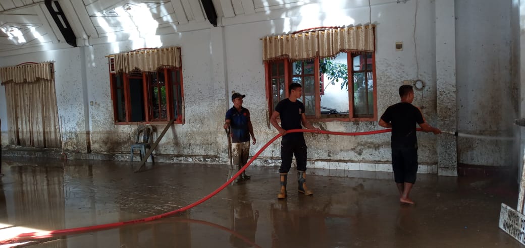 JAKARTA – Banjir bandang yang menerjang wilayah Kabupaten Bolaang Mongondow, Sulawesi Utara pada Rabu (22/9) telah surut dan kini menyisakan lumpur. Badan Penanggulangan Bencana Daerah (BPBD) Kabupaten Bolaang Mongondow bersama lintas instansi terkait seperti TNI, Polri, relawan dan masyarakat bergotong-royong membersihkan lumpur pascabanjir bandang tersebut dengan selang air dan peralatan seadanya hari ini, Sabtu (25/9).