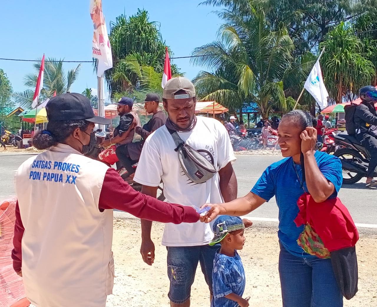 INDIESPOT.ID , Kota Jayapura – Memasuki hari ke 10 penyelenggaraan PON XX Papua. Satgas Prokes PON XX Kota Jayapura tetap berkomitmen membagikan masker langsung kepada masyarakat di Kota Jayapura.