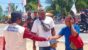 INDIESPOT.ID , Kota Jayapura – Memasuki hari ke 10 penyelenggaraan PON XX Papua. Satgas Prokes PON XX Kota Jayapura tetap berkomitmen membagikan masker langsung kepada masyarakat di Kota Jayapura.