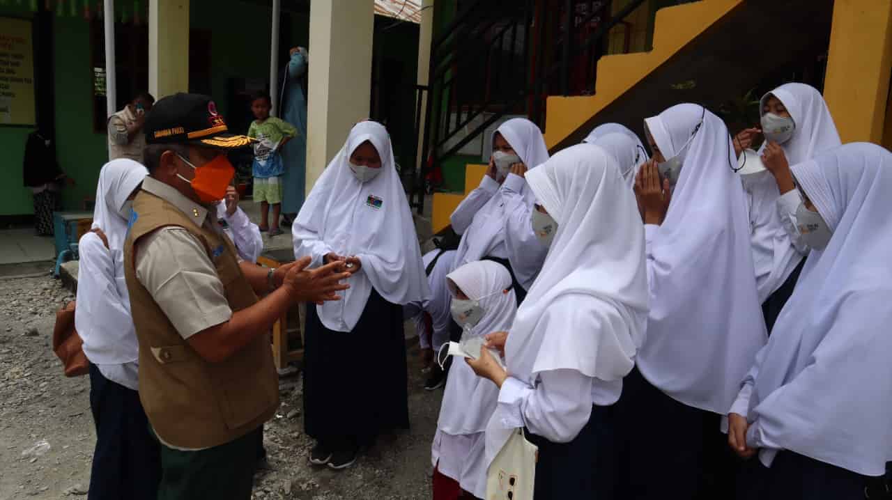 Kepala SMP YPK Kotaraja Patanduk Biring, mengucapkan terimakasih atas pemberian masker dari BNPB. Saya gembira atas pemberian masker ini semoga dapat mencegah penularan. “Saat ini siswa SMP YPK Kotaraja berjumlah 525, saat pembelajaran berlangsung hanya 2 mata pelajaran per hari selama 4 jam dengan kehadiran dibatasi 50 persen siswa. Pembelajaran tatap muka diberlakukan kembali harus dibarengi dengan prokes yaitu guru dan siswa menggunakan masker, menjaga jarak, dan pengecekan suhu. Hal ini sejalan dengan program pencegahan penularan Covid-19”, ujar Patanduk