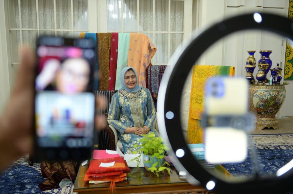 FOTO : Ketua Dewan Kerajinan Nasional Daerah (Dekranasda) Sumatera Utara (Sumut) Nawal Lubis mengikuti Pameran Rumah Kriya Asri secara daring melalui media sosial Instagram di Rumah Dinas Gubernur Sumut Jalan Jenderal Sudirman Nomor 41 Medan / Diskominfo Provsu. (REL / Diskominfo Provsu)