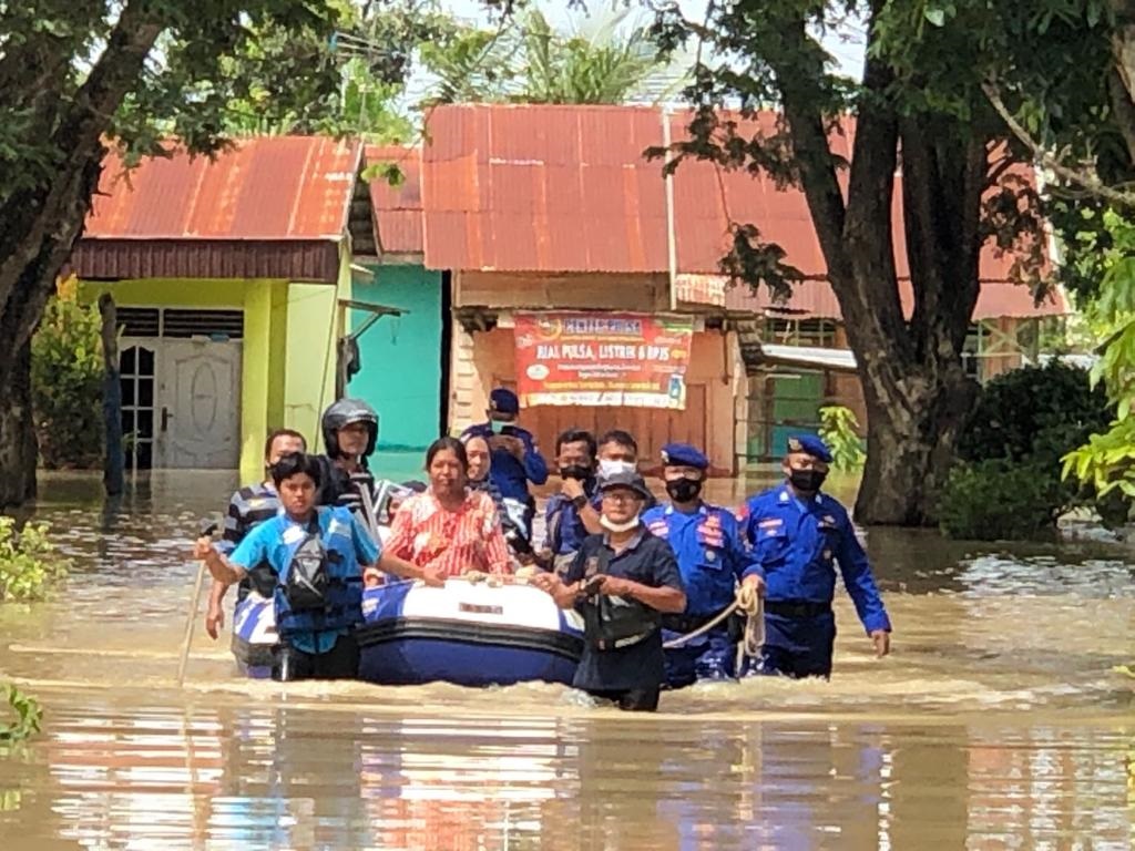 Pantauan di lapangan, Kamis (18/11), terlihat personel dari Polda Sumut, Sat Brimobdasu, Ditpolair Poldasu, Dit Sabhara Poldasu dibantu Polres Serdangbedagai, dengan menggunakan perahu karet mengevakuasi warga yang rumahnya telah terendam banjir.