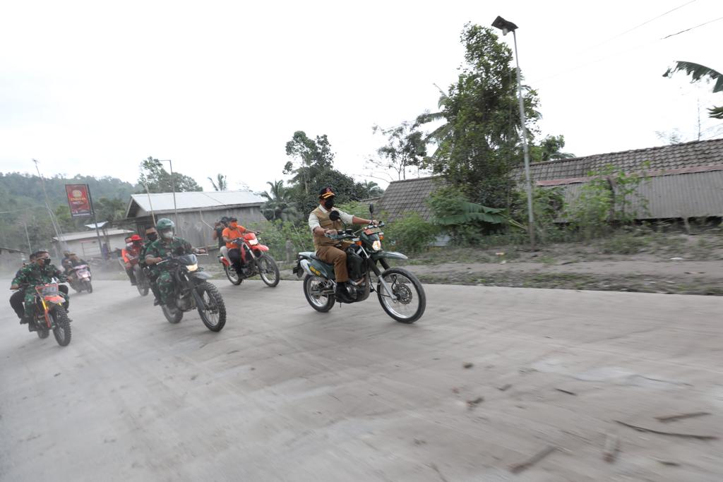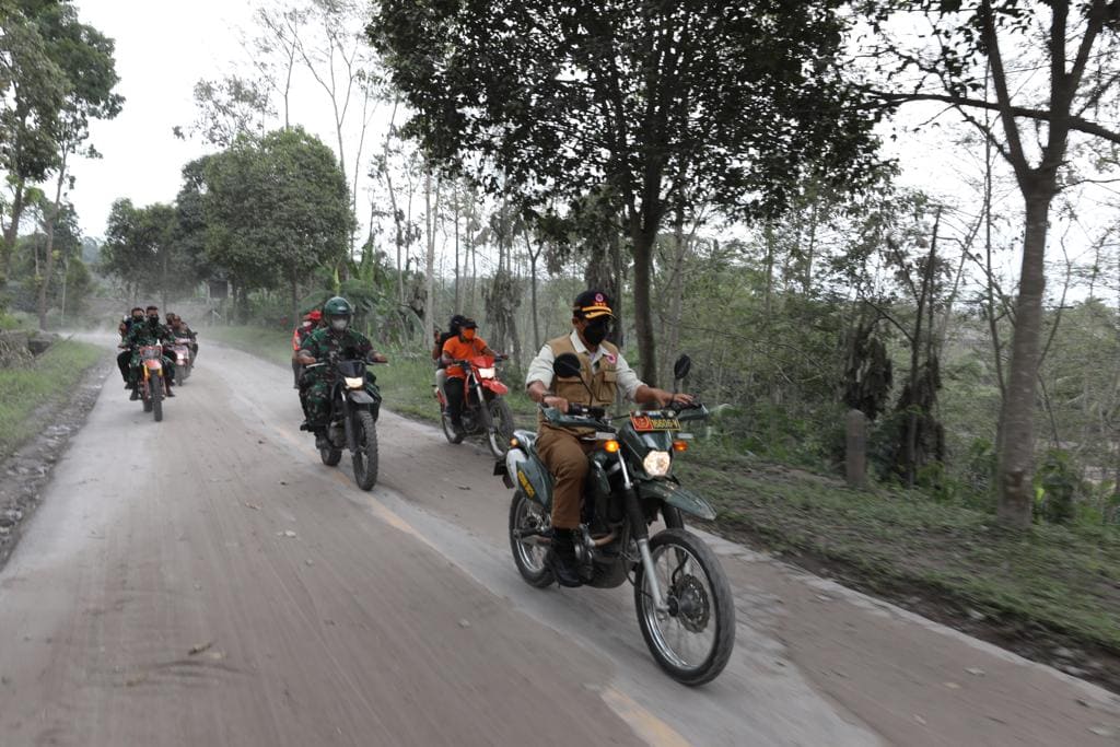 INDIESPOT.ID, Lumajang – Kepala Badan Nasional Penanggulangan Bencana (BNPB) Letjen TNI Suharyanto meninjau lokasi terdampak awan panas guguran Gunung Semeru di Jembatan Gladak Perak, Dusun Kamar Kajang, Desa Sumberwuluh, Kecamatan Candipuro, Kabupaten Lumajang, Jawa Timur, Senin (6/12). Kepala BNPB mengendarai sepeda motor jenis trail menuju ke lokasi, mengingat medan tidak dapat dijangkau menggunakan kendaraan roda empat.