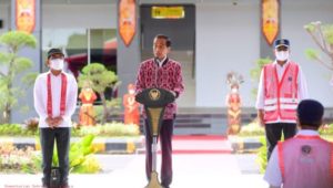 INDIESPOT.ID, Kabupaten Sintang – Presiden Joko Widodo mengawali kunjungan kerjanya di Provinsi Kalimantan Barat dengan meninjau sekaligus meresmikan Bandar Udara Tebelian di Kabupaten Sintang, pada Rabu, 8 Desember 2021. Bandara yang dibangun dengan anggaran Rp518 miliar tersebut akan mampu melayani sekitar 75 ribu penumpang pertahun.