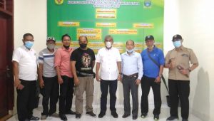 Saat audiensi hadir Ketua Porlempika, Sumut Jefri Gunawan Pakpahan dan Sekertarsinya, Ahmad Sani. Mereka, diterima Ketua Koni Sumut John Ismadi Lubis yang dampingi Wakil Ketua I Prof Agung.