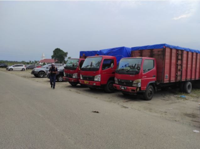 Kedelapan truk yang membawa barang-barang dari Malaysia tanpa dokumen yakni berisikan acesoris patung, berisikan mie Penang, sepatu bekas, daging ikan, ikan teri kering, daging sapi.