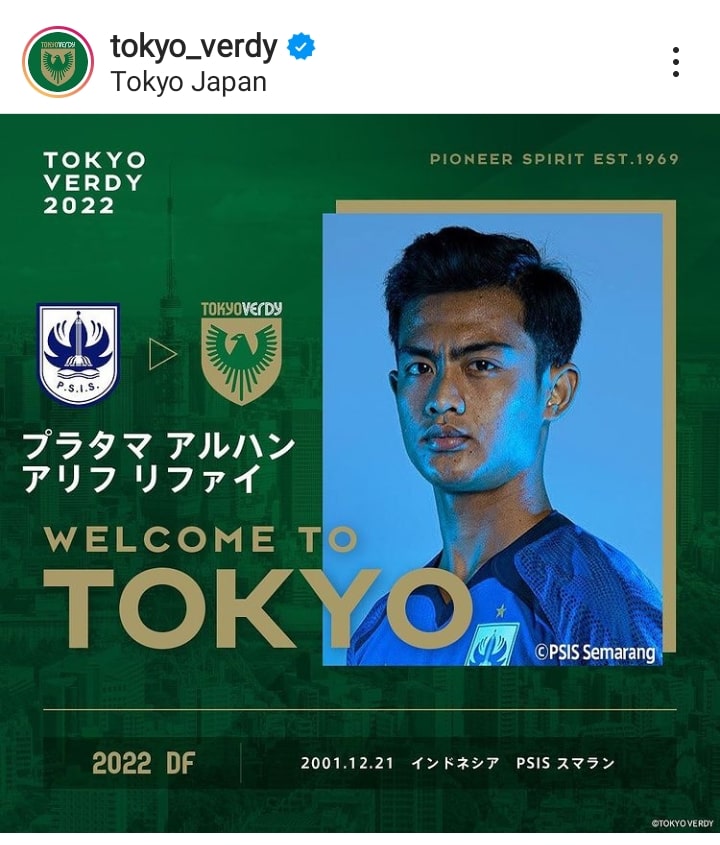 “Kami dengan senang memberi tahu jika Arhan, yang sebelumnya bergabung di PSIS Semarang di Indonesia, telah memutuskan bergabung dengan Tokyo Verdy dengan transfer penuh,” cuit akun resmi @TokyoVerdySTAFF.