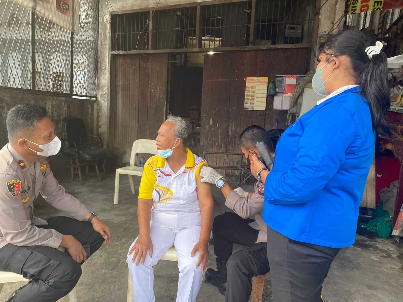 Seperti pantauan di Jalan Malaka, Kecamatan Medan Perjuangan, personel Polsek Medan Timur dengan mendatangi satu per satu rumah warga kemudian mengajak dan memberikan vaksinasi kepada kaum lansia yang belum divaksin.