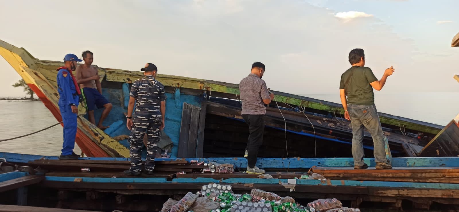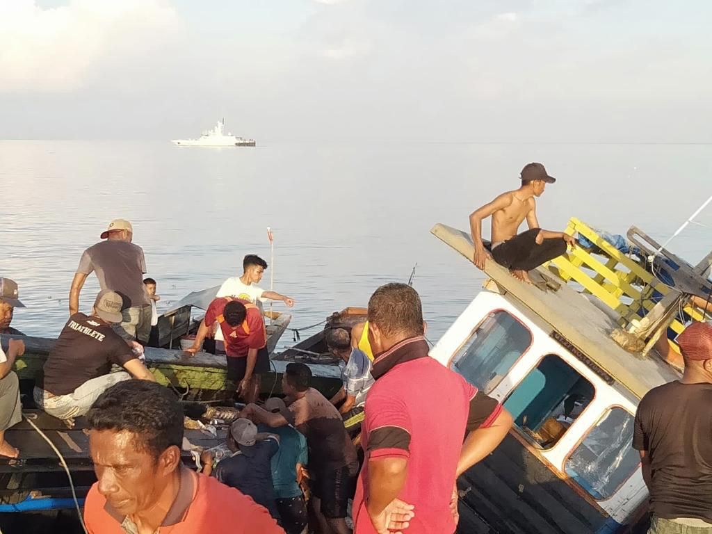 “Seluruh ABK berjumlah empat orang termasuk Nakhoda dapat dievakuasi dengan selamat dengan kondisi kapal separuh tenggelam, dan sebagian muatan telah tercecer ke laut” pungkasnya.