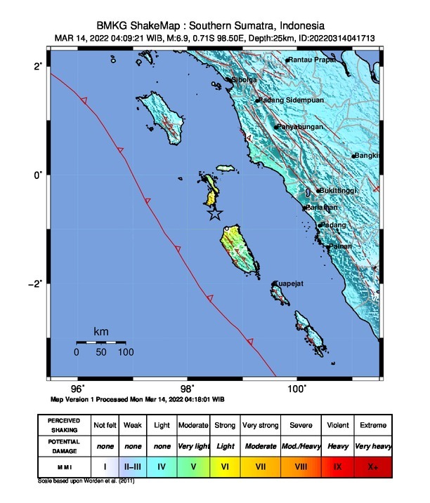 Hingga kini, BNPB masih terus melakukan koordinasi dengan BPBD terdampak, seperti di Kabupaten Nias Selatan, Kota Padang, Kabupaten Kepulauan Mentawai, Kota Pariaman, Kabupaten Pasaman dan Pasaman Barat. Sejumlah warga di beberapa wilayah tersebut merasakan guncangan dengan intensitas sedang hingga sangat kuat dengan durasi waktu berbeda.