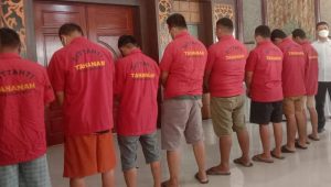 Sedangkan, 7 tersangka yang ditahan tersebut yakni, HS, IS, TS, RG, JS, HG dan SP. Saat di ekspos, kedelapan tersangka yang ditahan kompak memakai baju tahanan berwarna merah.
