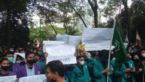 INDIESPOT.ID, Medan – Puluhan mahasiswa dari sejumlah kampus di Kota Medan berunjuk rasa di depan Gedung DPRD Sumatera Utara, Jalan Imam Bonjol, Rabu, 13 April, pagi.