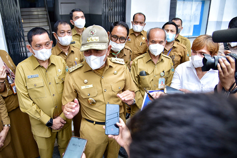 Turut mendampingi Gubernur saat peninjauan Asisten Pemerintahan dan Kesejahteraan Rakyat M Fitriyus, Kepala Biro Administrasi Pimpinan Setdaprov Sumut Basarin Yunus Tanjung, Plt Kepala Dinas Pendidikan Lasro Marbun, dan Plt Kepala Dinas Kominfo Sumut Kaiman Turnip. (Dim/Rel)