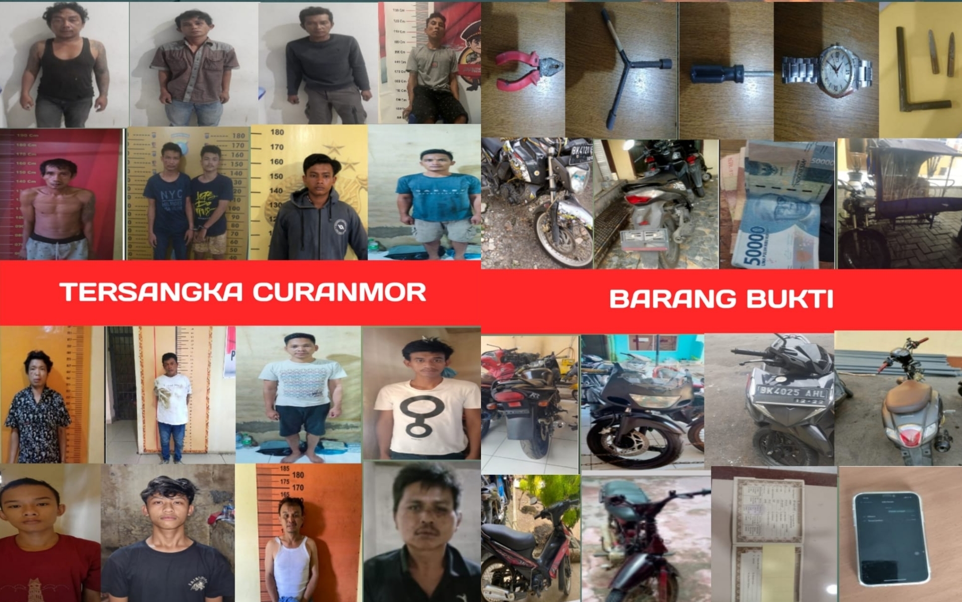 INDIESPOT.ID, Medan – Polrestabes Medan berserta jajaran berhasil mengungkap 16 kasus pencurian kendaraan bermotor dalam sepekan terakhir di Bulan Mei. Dalam pengungkapan itu, Polrestabes Medan berhasil menangkap 25 pelaku yang beraksi di 16 lokasi pencurian tersebut.
