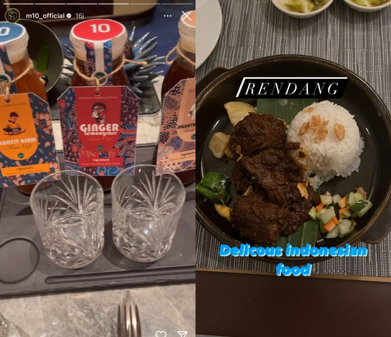 Nggak cuma jamu, gelandang setinggi 180cm itu juga menunjukkan gambar masakan khas Nusantara, yaitu rendang. Dalam unggahannya tersebut tampak rendang dengan seporsi nasi putih serta serta bawang goreng di atasnya dan juga acar.