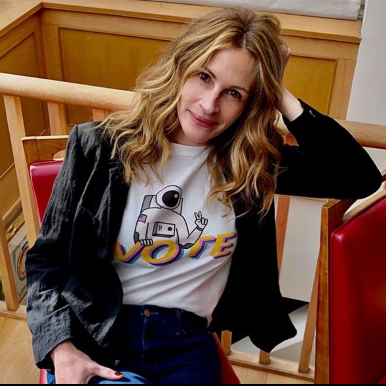 Dengan gaya bak ABG, Julia Roberts makin tampak awet muda walaupun umurnya udah 54 tahun. Dari waktu ke waktu, wajahnya malah terlihat sama aja. Padahal usianya terus bertambah. Apalagi dengan gaya Julia satu ini, ia kayak masih umur 30 tahunan, ya?