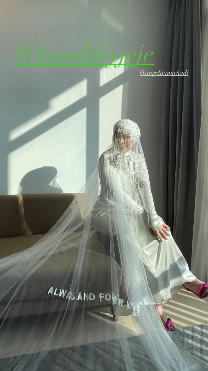4. Setelah akad selesai, Sivia Azizah pun tampak berganti busana. Ia mengenakan pakaian menjadi dress putih dan kerudung berwarna senada. Makin anggun dan cantik saja penampilanny.