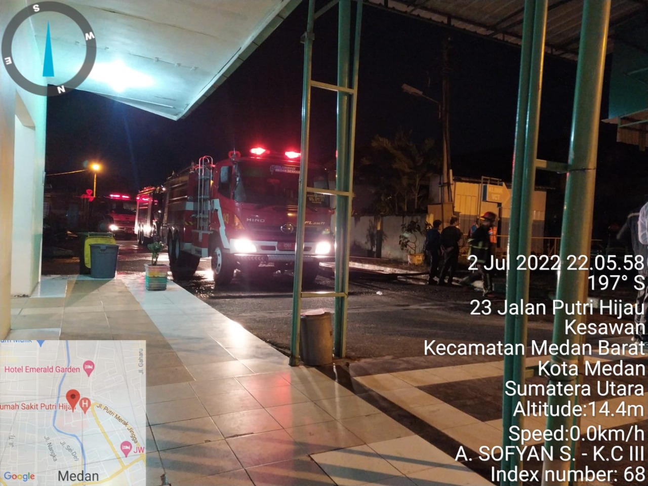 INDIESPOT.ID, Medan – Kebakaran terjadi di salah satu ruangan di Rumah Sakit Putri Hijau Kecamatan Medan Barat, Kota Medan, Sabtu (2/7) malam. Butuh waktu tiga jam petugas pemadam kebakatran berhasil memadamkan api.