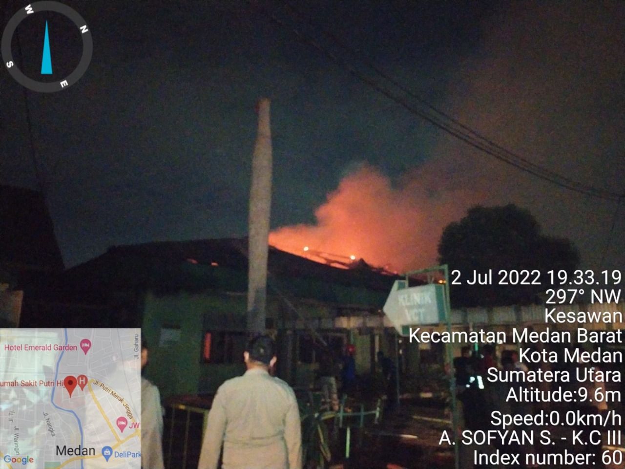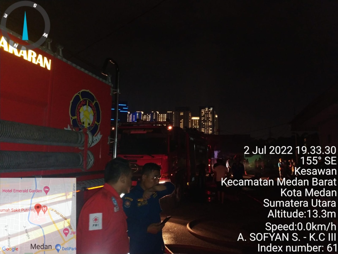 Manager Pusdalops-PB BPBD Kota Medan Ronald F. Sihotang mengatakan api diketahui, memulai membesar, terjadi sekira pukul 18.57.